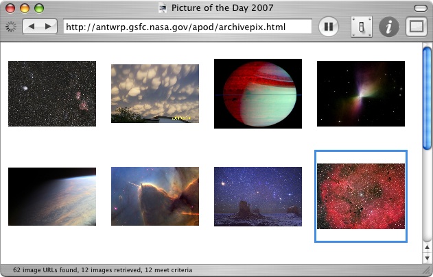 In each case, your Mac's default browser will go to the page containing the image, allowing you to see any related text, and possibly explore the site further.